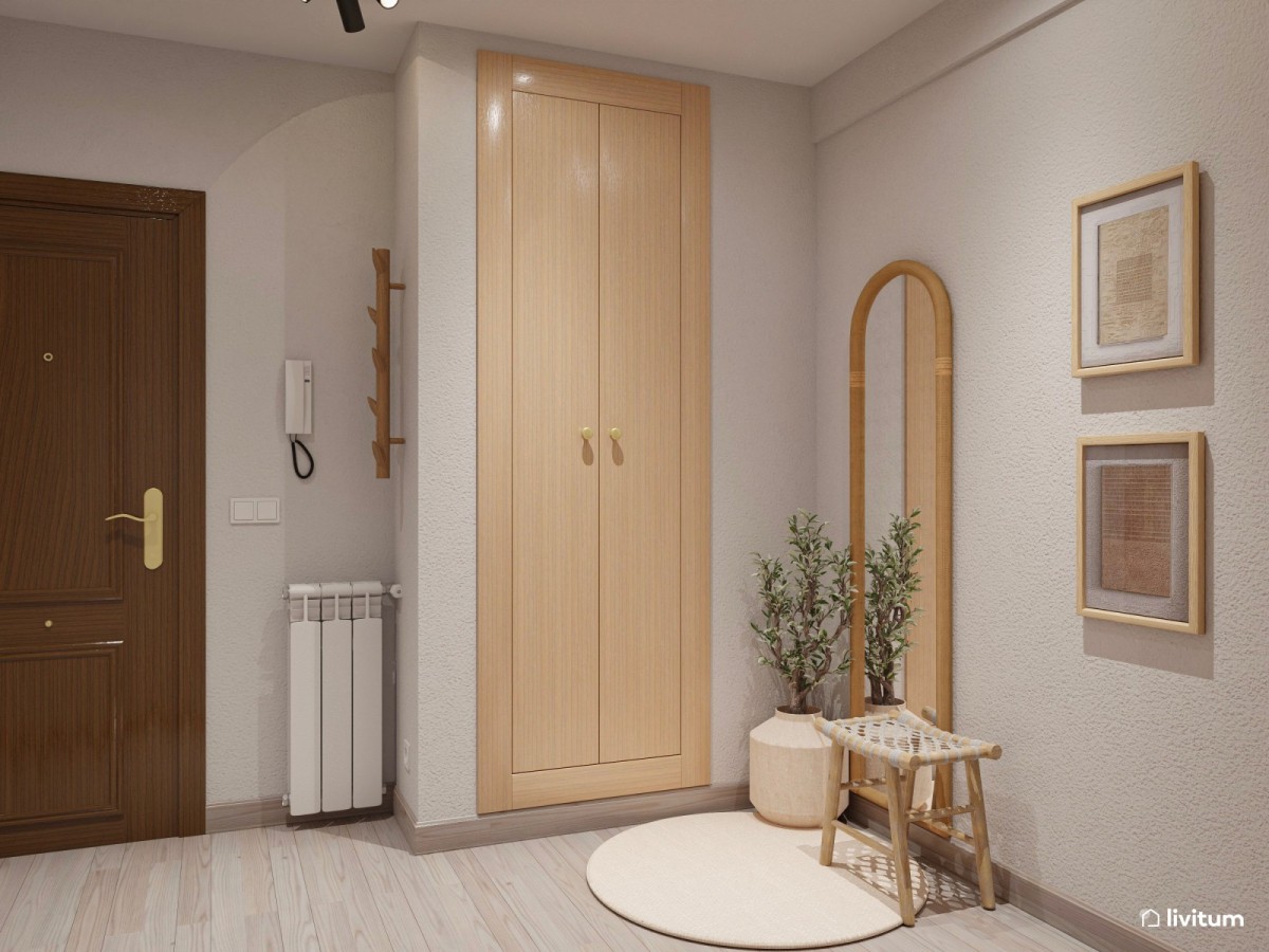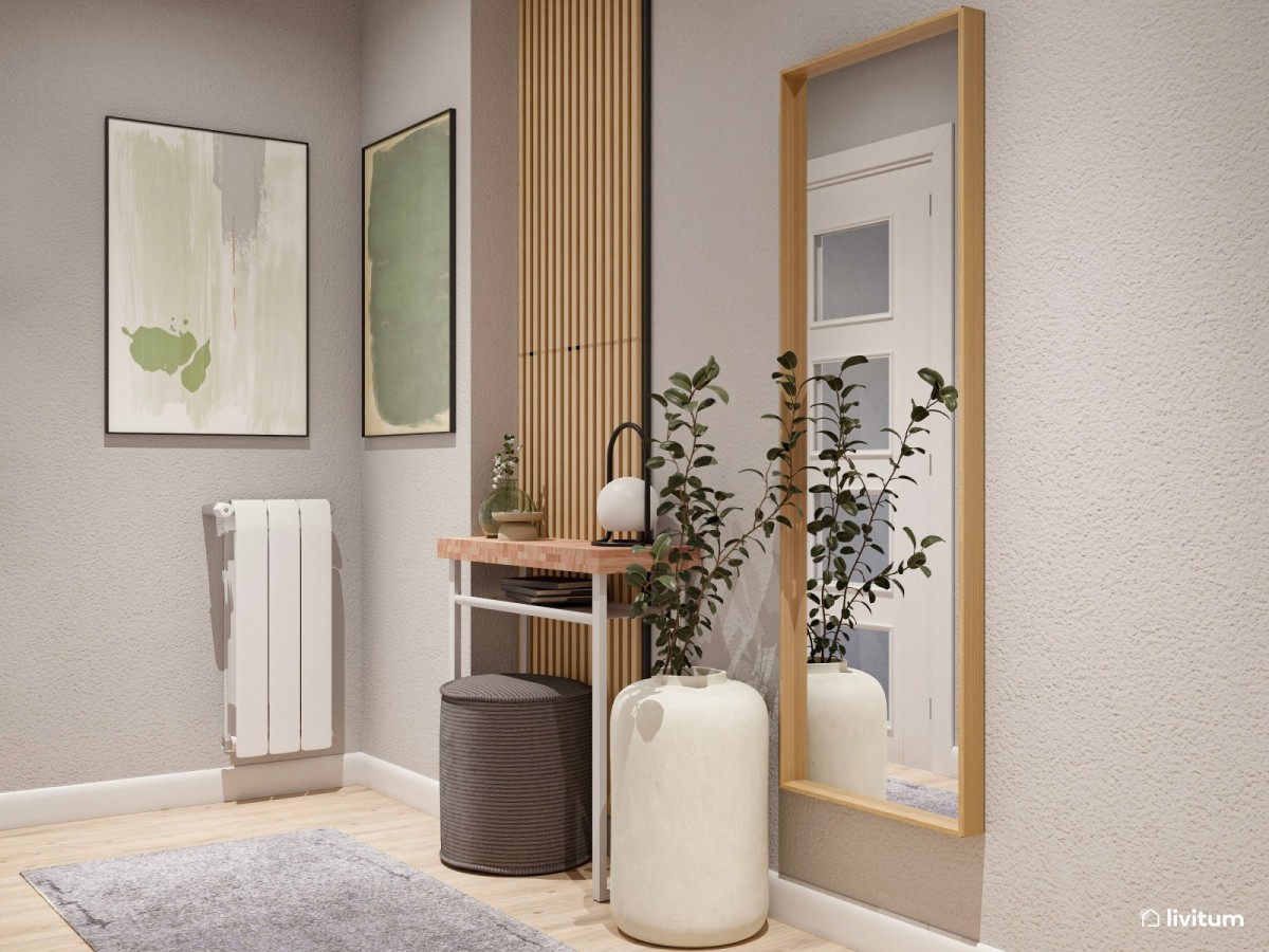Además de decorar, siempre hablamos de las bondades de las alfombras a la hora de delimitar espacios. Una premisa que también puedes aplicar en el recibidor. Por ejemplo, en esos casos en los que la entrada de la casa es un largo pasillo en el que no se distingue el espacio de recibidor del resto. Una de las formas de delimitar y dar vida a estos recibidores es con una bonita alfombra que separará esa zona del resto del pasillo, acortando de paso visualmente su largura.