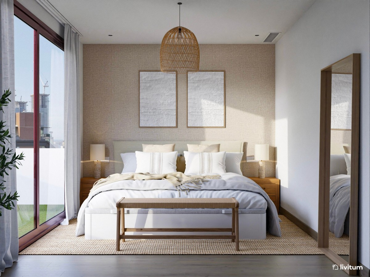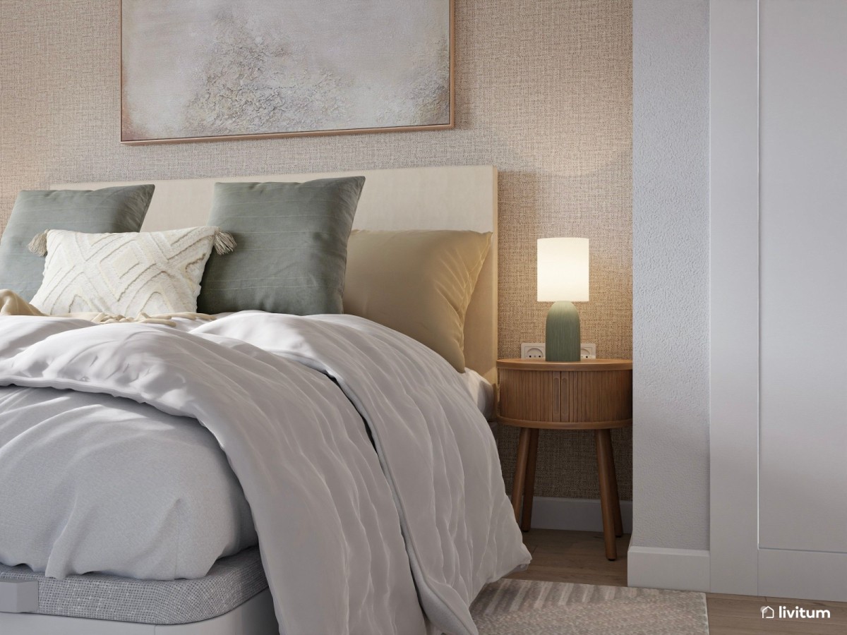 Esta paleta es perfecta para espacios pequeños, pues no provoca ese corte óptico de algunos blancos demasiado puros. Además, suaviza las sombras, logrando que se perciba mayor continuidad visual en el dormitorio.