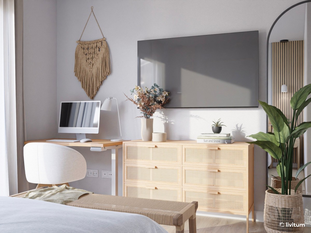 Lo artesanal enamora a diseñadores, arquitectos y decoradores. Por supuesto, en el dormitorio esta tendencia no será una excepción. En 2026 veremos más jarrones de cerámica, tejidos naturales, obras pequeñas pintadas a mano, cestas y piezas directamente traídas de la naturaleza, como troncos o ramilletes. Estos toques son ideales para añadir un extra de calidez y personalidad al dormitorio. Nada como un accesorio que nos recuerde a una persona, a un lugar visitado o a un momento especial.