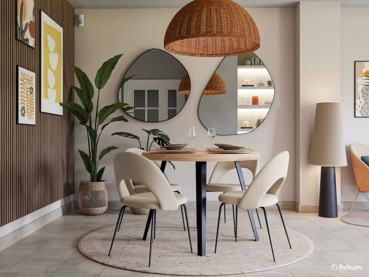 Mezclar estilos en decoración funciona muy bien si existe un hilo conductor visible. Propón una base dominante, por ejemplo, líneas depuradas y maderas claras, y reserva un 30% para piezas con más carácter: un aparador vintage, una silla danesa de los 60 o un espejo art déco. Lo ideal es que puedas unificar a través del color, repetir materiales y respetar las alturas y proporciones.