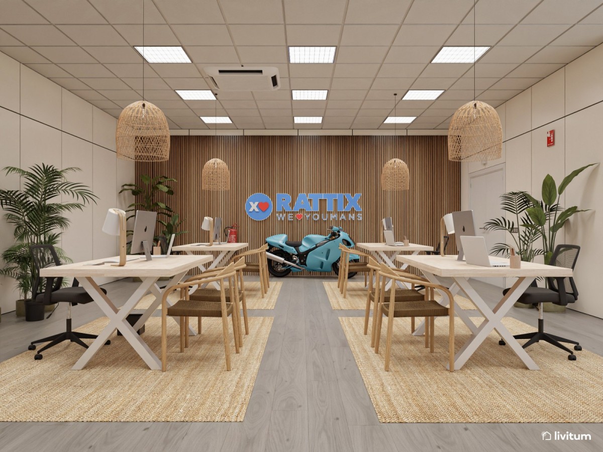 Como también es importante la presencia de plantas. Ese contacto con la naturaleza también ayuda a crear ambientes de trabajo más saludables y, por ende, más productivos. Ya sea con la incorporación de plantas aquí o allí, como añadiendo elementos fabricados con materiales naturales, como la madera o las fibras naturales, que de paso, aportarán calidez a cualquier entorno.