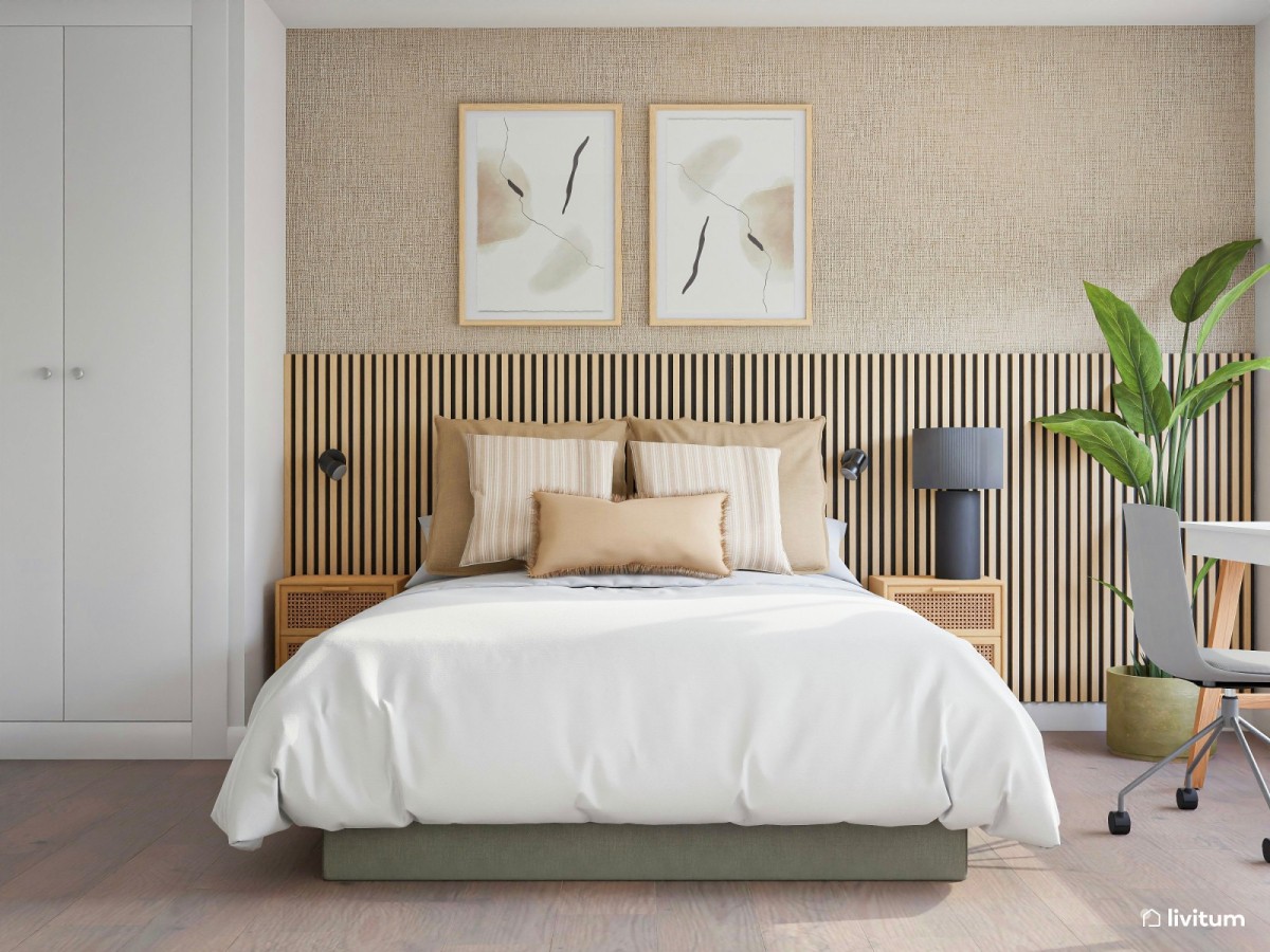 Del mismo modo, su grosor y robustez también pueden ser clave en su elección. Si el dormitorio tiene pocos metros cuadrados, es bueno que el cabecero sea más ligero. De fibras naturales o de tonos claros, y a poder ser, no muy grueso, para que no ocupe más del necesario. Por el contrario, si te sobra espacio, su grosor o material no tiene tanta importancia.