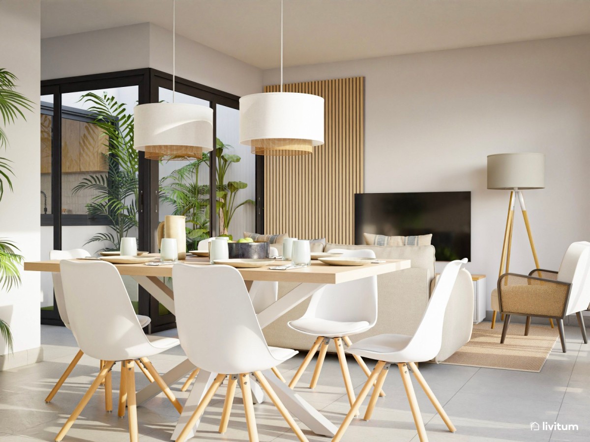 En esa funcionalidad, al elegir los muebles, entra también la durabilidad. Por aquí pasarán muchas personas, así que los muebles escogidos deben ser resistentes a diferentes envites. Como sofás con fundas lavables o mesas de madera robusta. Preferiblemente, muebles de líneas sencillas que den una mayor sensación de ligereza al espacio y que resulten fáciles de limpiar.