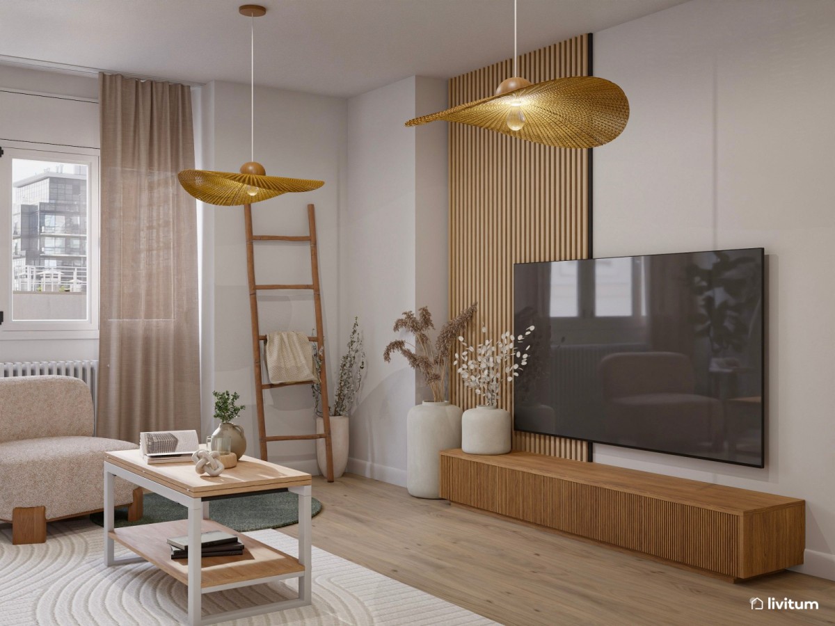 Sin duda, las piezas más importantes del salón son el sofá y la televisión. Dos imprescindibles que debes situar a una distancia adecuada si no quieres tener problemas con tu vista. Ni demasiado cerca, ni demasiado lejos. En ello interviene el tamaño del televisor que, aunque posiblemente cada vez lo quieras más grande, no debe ser desproporcionado al espacio del que dispones.