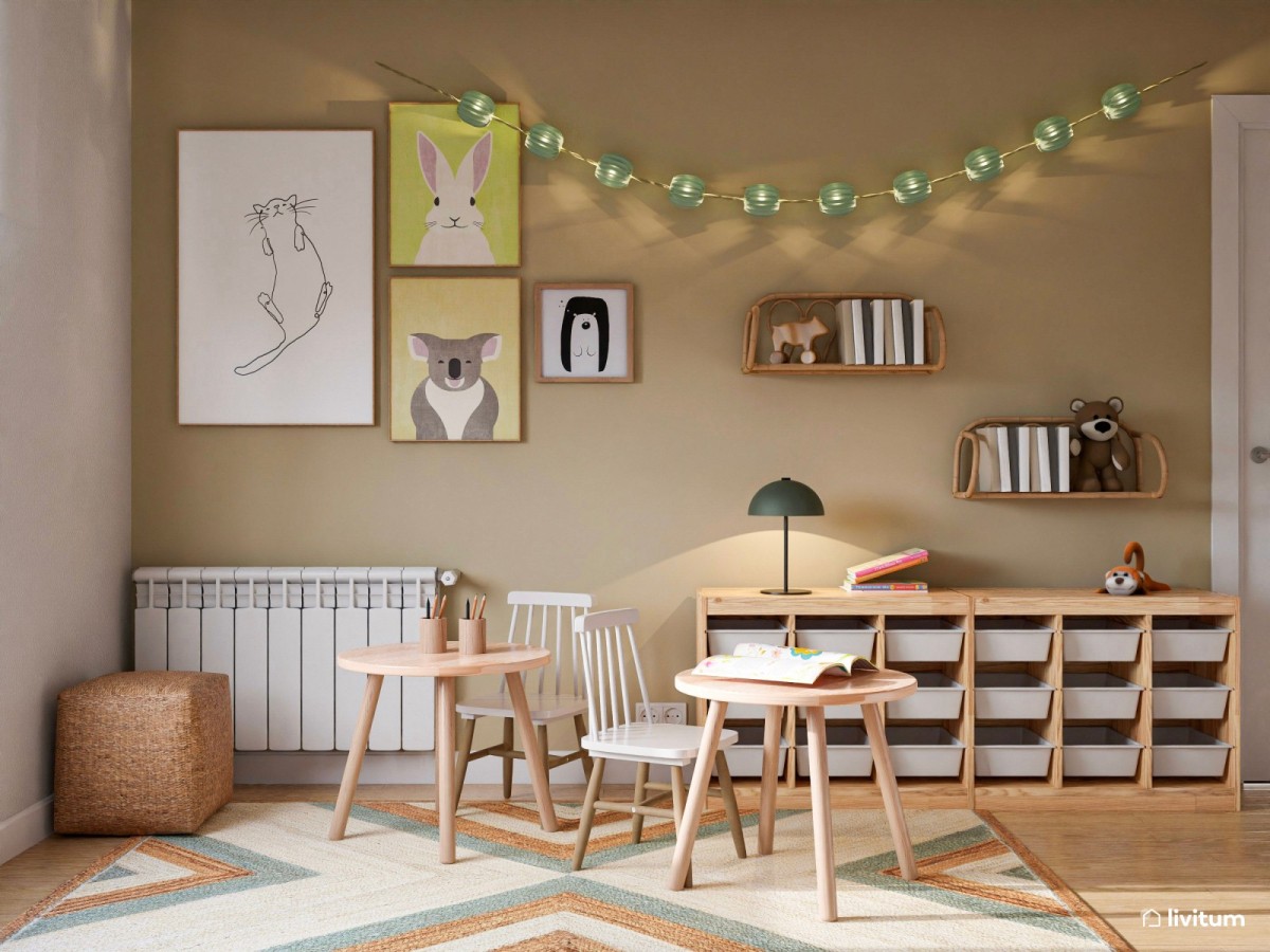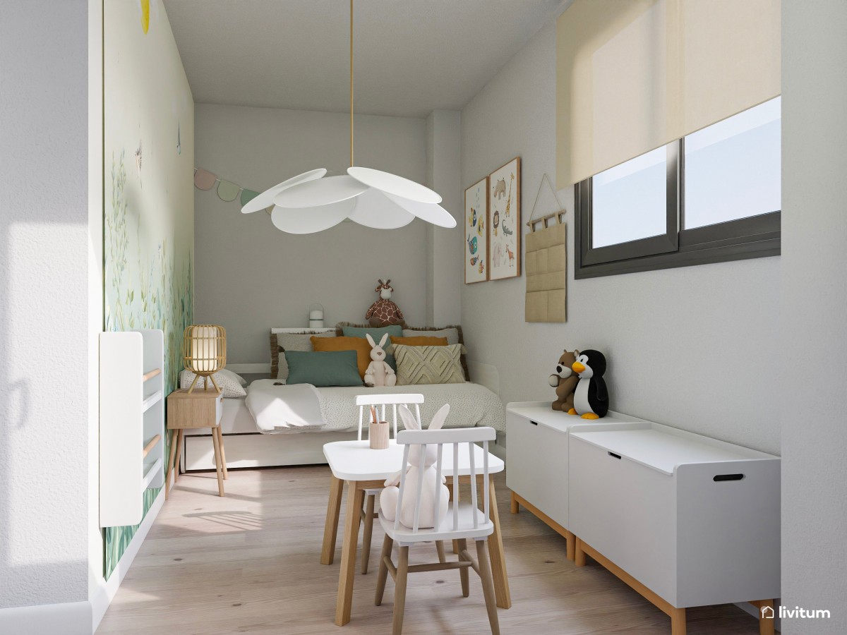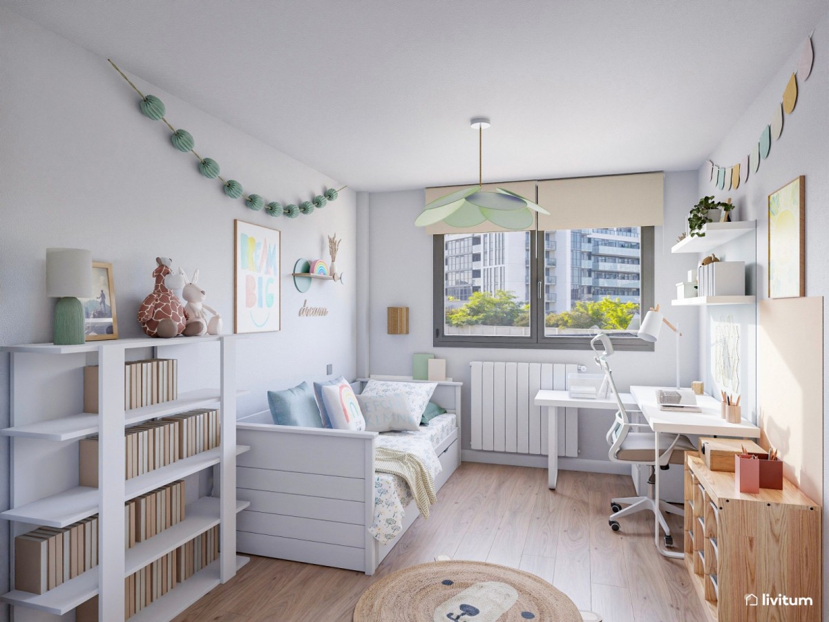 En toda habitación infantil, es clave mantener el espacio seguro y adaptado a los pequeños. Por eso, debemos tomar algunas medidas extra que quizás no consideraríamos en un dormitorio para adultos: mantén los cables fuera de su alcance, prefiere enchufes con tapa y, si has instalado lámparas de pie o sobre estanterías altas, anclarlas a la pared es lo ideal.