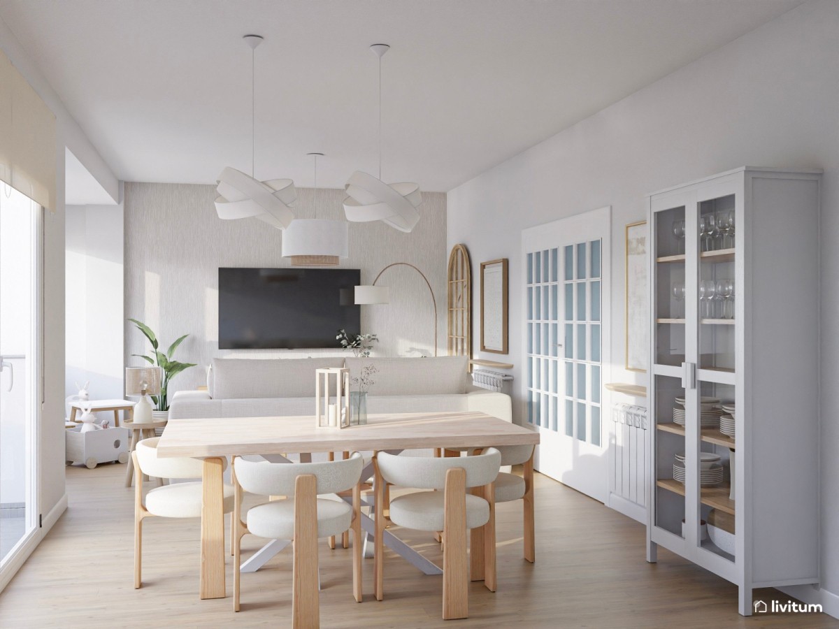 Si el estilo nórdico es tu pasión, puedes conseguir tu comedor ideal, aunque éste tenga pocos metros cuadrados. Es un estilo perfecto para este tipo de espacios, ya que le encantan los colores claros y la ausencia de muchos elementos, pero aporta siempre mucha calidez por el uso de la madera y de las fibras naturales.