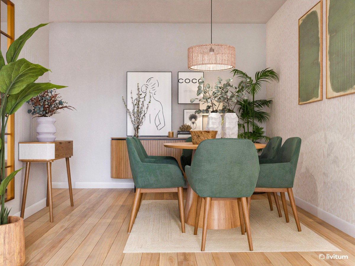 10. Si buscas un espacio con carácter y personalidad, añade un color de acento que destaque. Un precioso tono verde oscuro, por ejemplo, en las sillas del comedor.
