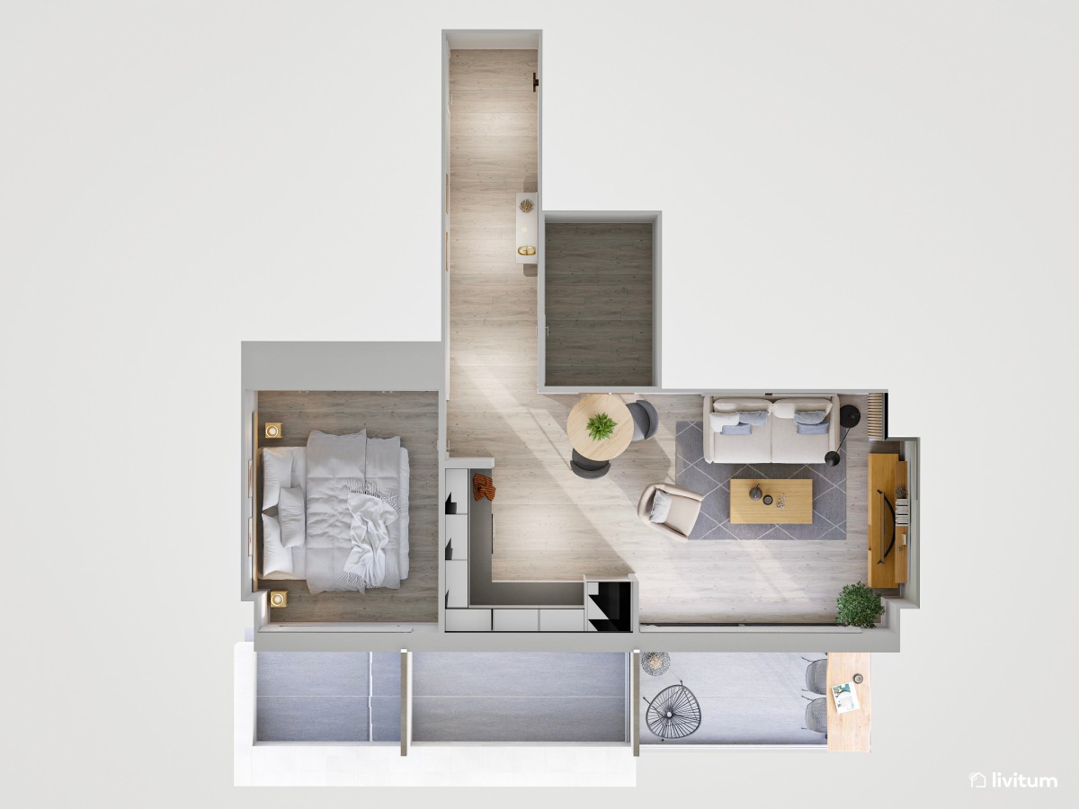 En este privilegiado entorno, que mezcla naturaleza con vida urbana, se sitúa uno de los últimos proyectos de interiorismo de Livitum Pro: un piso de alquiler de media estancia de 37,8 m², diseñado para destacar en el mercado de alquiler. El proyecto ha contado con la asesoría gratuita para empresas que incluye Livitum Pro, donde solo se debe pagar por los muebles incorporados y no por el diseño del espacio.