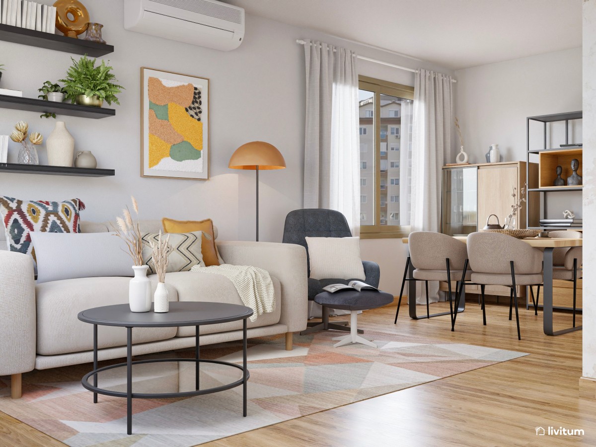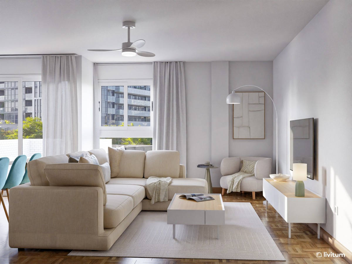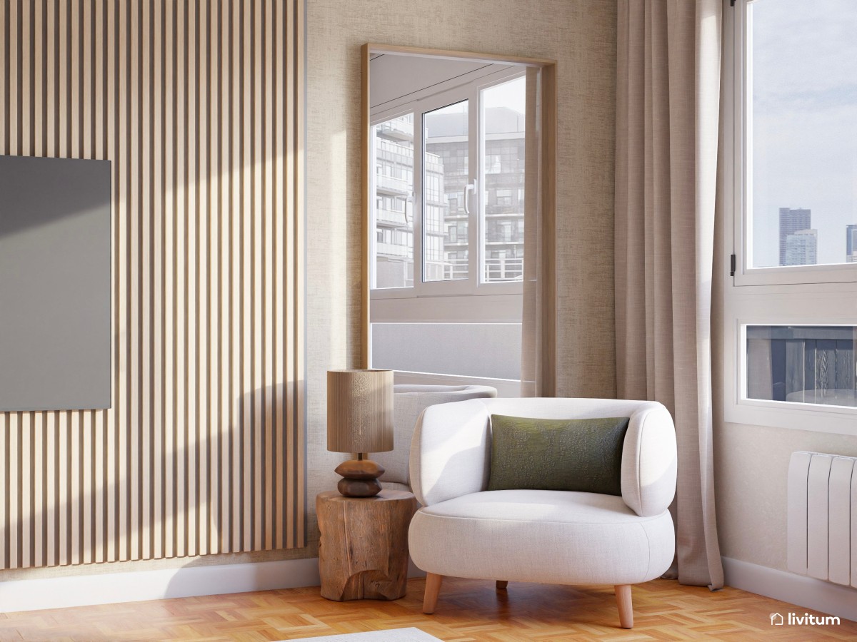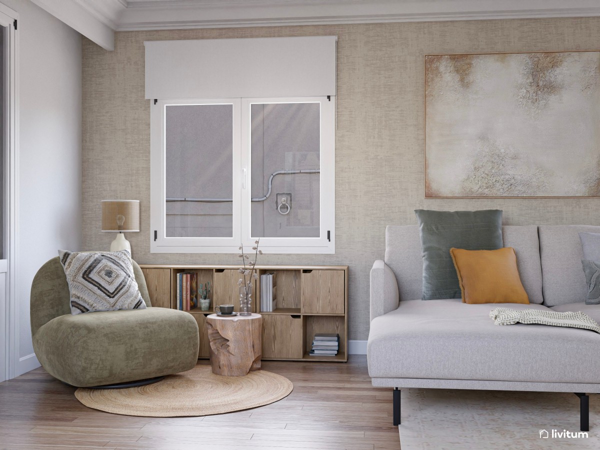 En salones muy pequeños puedes crear tu zona de lectura en el propio sofá del salón, añadiendo una mesa auxiliar a su vera y una buena lámpara que ilumine tu lectura. Otra opción es añadir una pequeña butaca a juego junto al sofá. No es necesario que la zona de lectura esté aislada del resto; puede formar parte del salón. Lo importante es la funcionalidad que le des a cada uno de los muebles, adaptándolos para crear ese rincón en el que te sientas a gusto para leer y dejar volar tu imaginación.