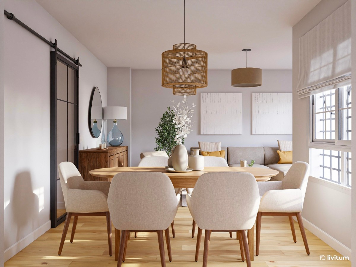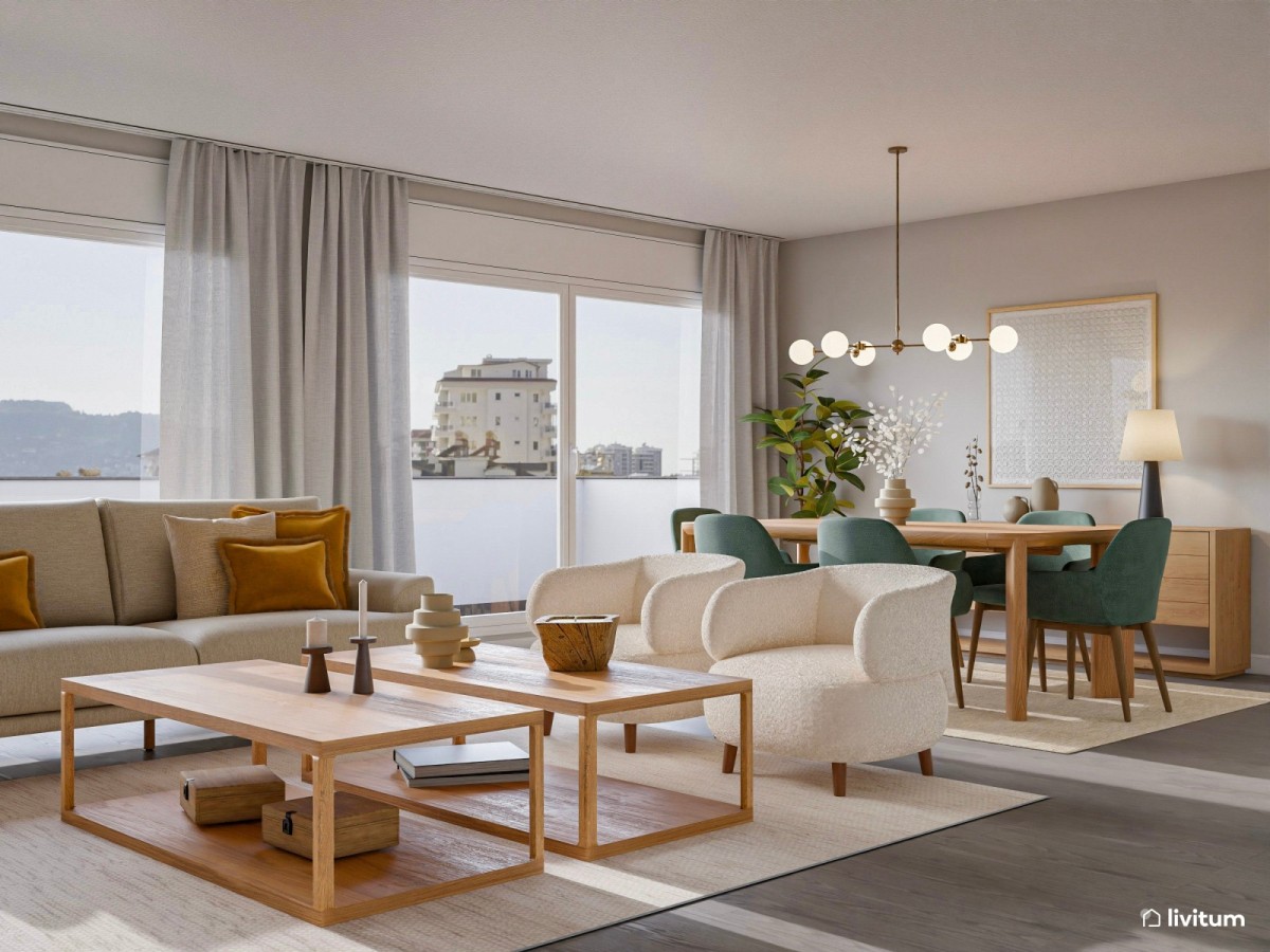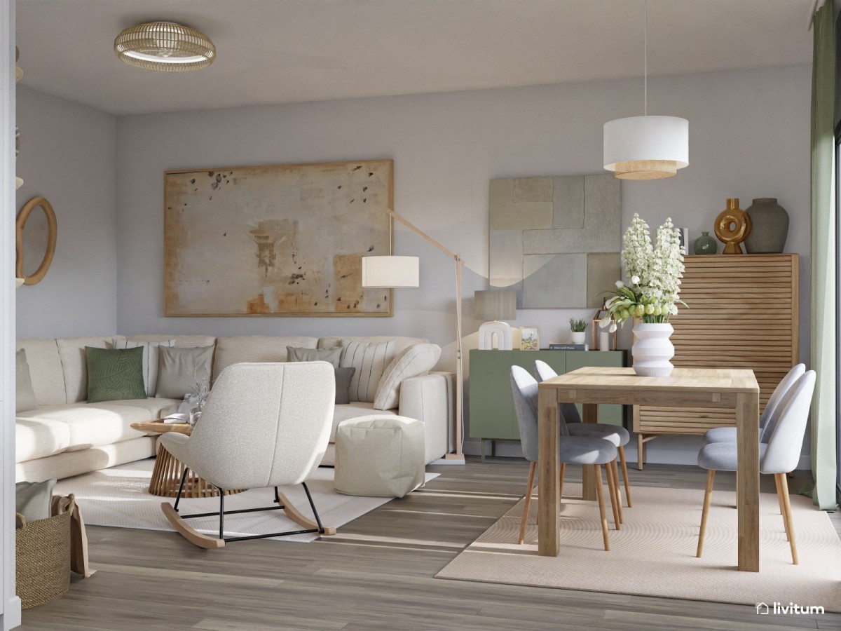 En salones, los estilos modernos y nórdicos son de los más queridos. Muestra de ello es este proyecto para uno de nuestros clientes, que también ha encantado en la web de Livitum. Un espacio en el que se combinan los tonos claros, con la madera y con detalles de fibras naturales que aportan mucha calidez, al tiempo que enamoran.