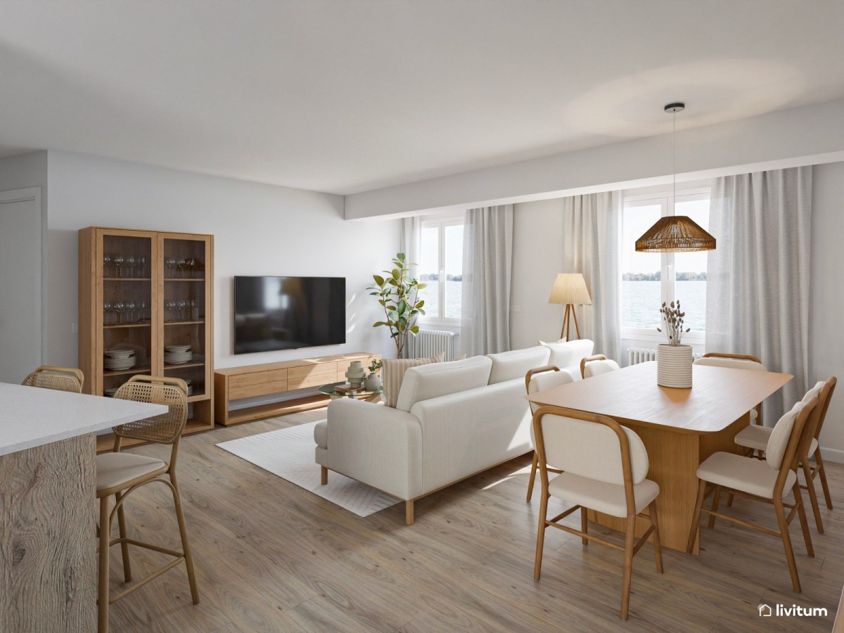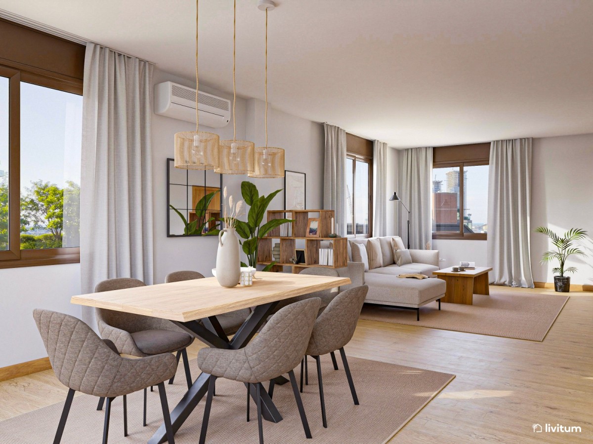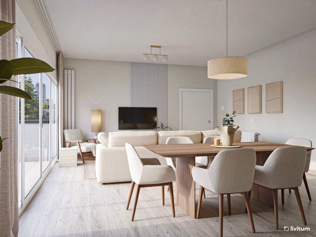 En salones, los estilos modernos y nórdicos son de los más queridos. Muestra de ello es este proyecto para uno de nuestros clientes, que también ha encantado en la web de Livitum. Un espacio en el que se combinan los tonos claros, con la madera y con detalles de fibras naturales que aportan mucha calidez, al tiempo que enamoran.