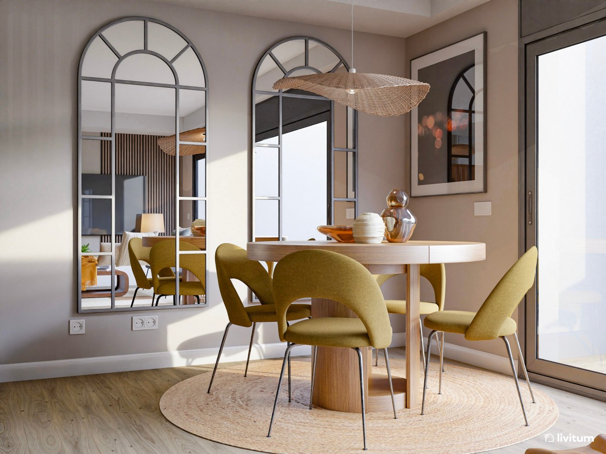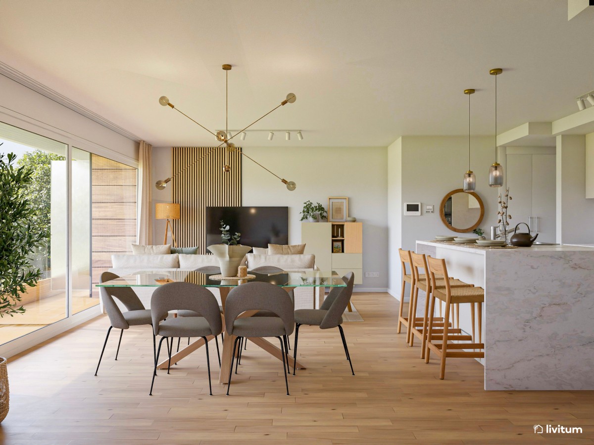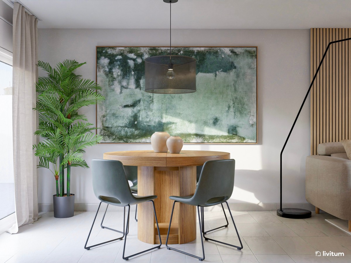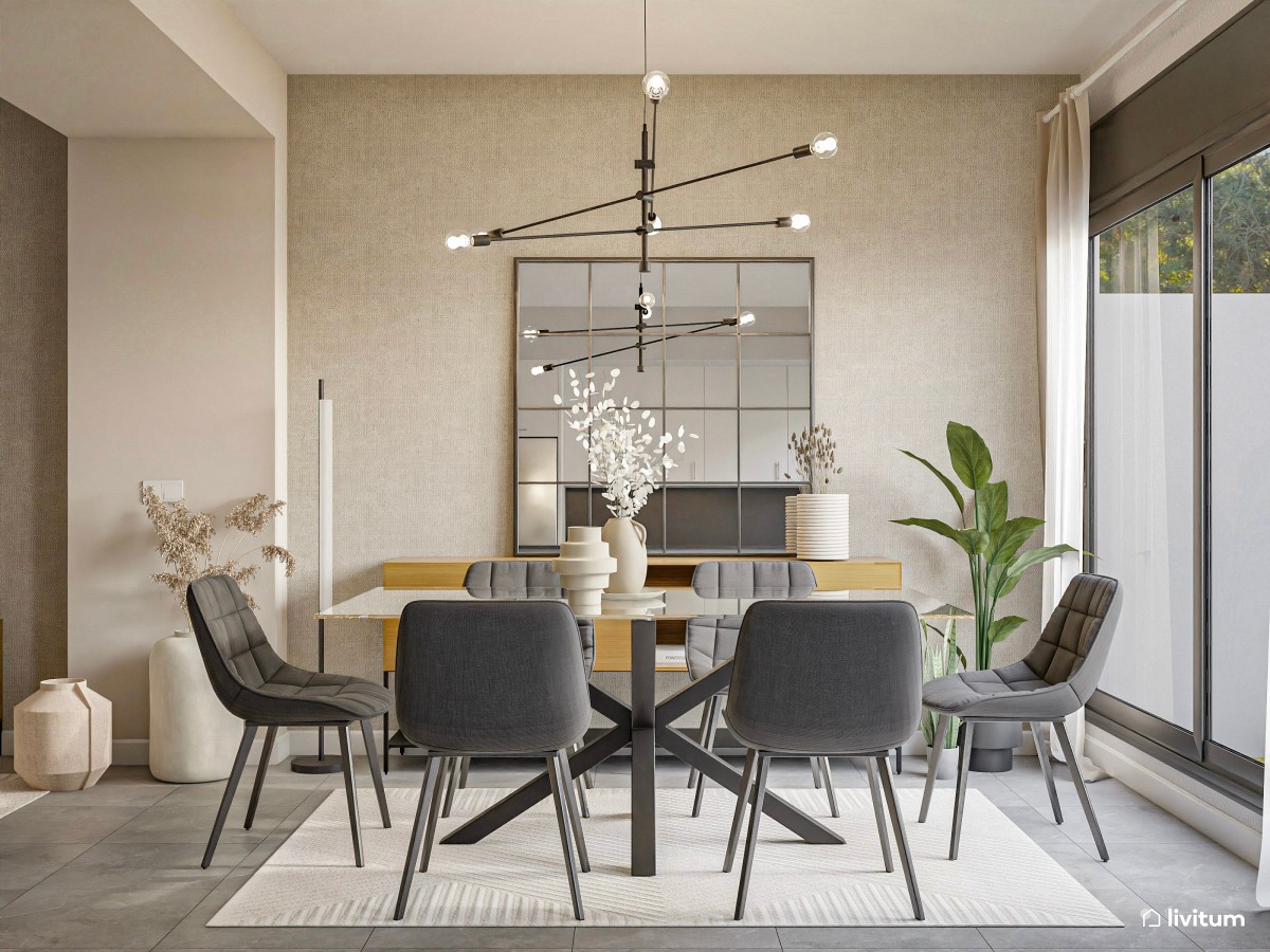 La iluminación del comedor no solo tiene que ver con la cantidad de luz natural que recibe. Lo cierto es que las fuentes de luz artificial son igual de importantes, ya que permiten que la zona se disfrute tanto de día como de noche. Una bonita lámpara sobre la mesa puede ser la compañía perfecta para esa velada o cena que estás planeando.