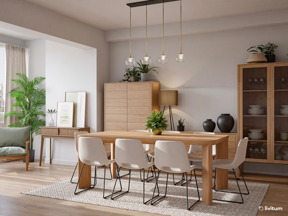 A todo ello hay que tener en cuenta también su ubicación, dejando espacio a su alrededor para que se pueda circular con total normalidad y sin estrecheces. La separación perfecta entre la mesa y las paredes, sin contar las sillas, debe ser de entre 80 cm y 100 cm. para una mayor comodidad.